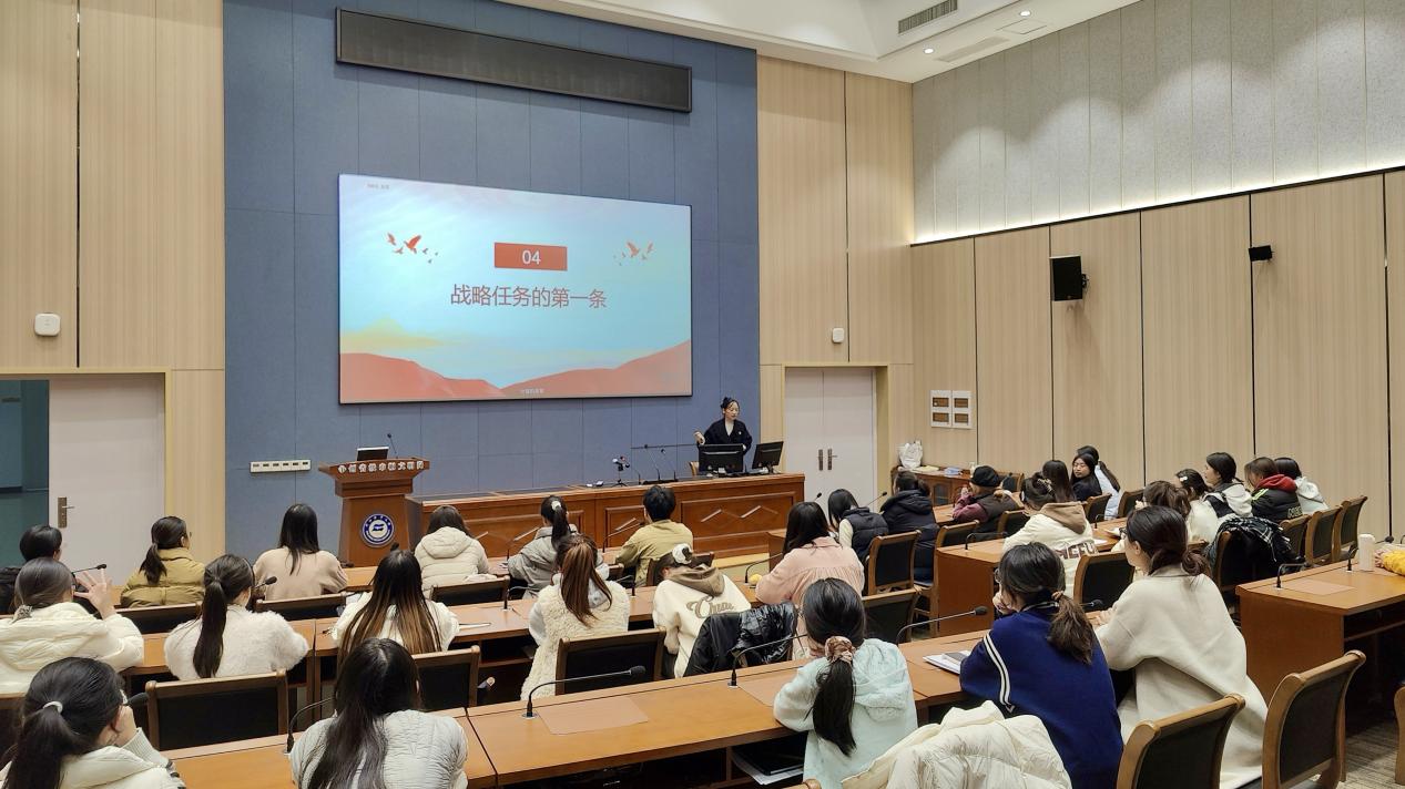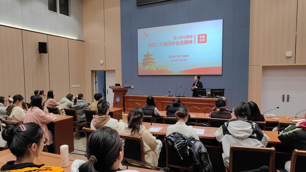 为深入学习宣传贯彻党的二十届四中全会精神,11月24日晚,外国语乐鱼(中国)官方党委邀请浙江省“新时代真理的味道”青春宣讲团、舟山市“新潮声”理论宣讲团、学校“海潮·8090”理论宣讲团成员、乐鱼(中国)官方学工办石鹰婷老师,面向全院学生党员开展专题党课学习,引导学生党员深刻领会全会精神实质,将理论学习与专业发展、实践服务相结合。