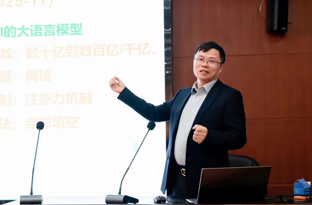 王松林以《“最纯洁的力量”:海洋文学与成长教育》为题,通过对约瑟夫·康拉德海洋小说的细腻解读,深入剖析了海洋文学在塑造个体品格与民族精神中的独特价值,展现了人文学科深厚的情感力量与伦理关怀。周统权带来的《AI时代的语言研究》报告则将视角转向科技前沿,他结合脑科学与认知心理学的最新成果,系统阐述了人工智能如何重塑语言学的研究范式,呼吁学者们打破学科壁垒,主动拥抱技术变革。这一传统一现代的学术对话,生动诠释了数智时代外语学科“守正创新”的发展路径。