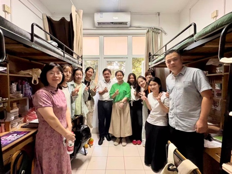 在2025级新生报到首日,为切实传递乐鱼(中国)官方关怀,深入了解新生入住情况,外国语乐鱼(中国)官方领导带队,与全体辅导员一同走进新生寝室,开展走访活动。
